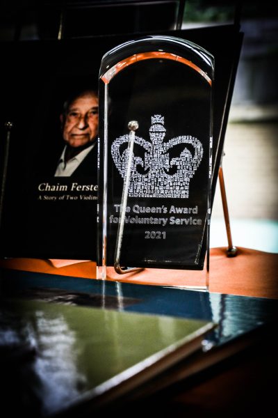 The purpose of the afternoon was twofold: – to recognise the enormous contribution to Jewish and wider society made by the My Voice participants in sharing their stories, and their courage in doing so, and to honour the 50 volunteers involved in the project. The group befriend the survivors and record their stories – giving each the support, space and as much time as they need. Alongside them, others work behind-the-scenes, acting as transcribers, editors, photographers, and designers. Together they given hundreds upon hundreds of hours to produce, to date, 33 life-story books with a further 11 currently in production. In acknowledgement of their outstanding work the group were granted our late Majesty’s Queen’s Award for Voluntary Service in 2021, and due to the pandemic, this was the first opportunity to publicly celebrate their achievement.