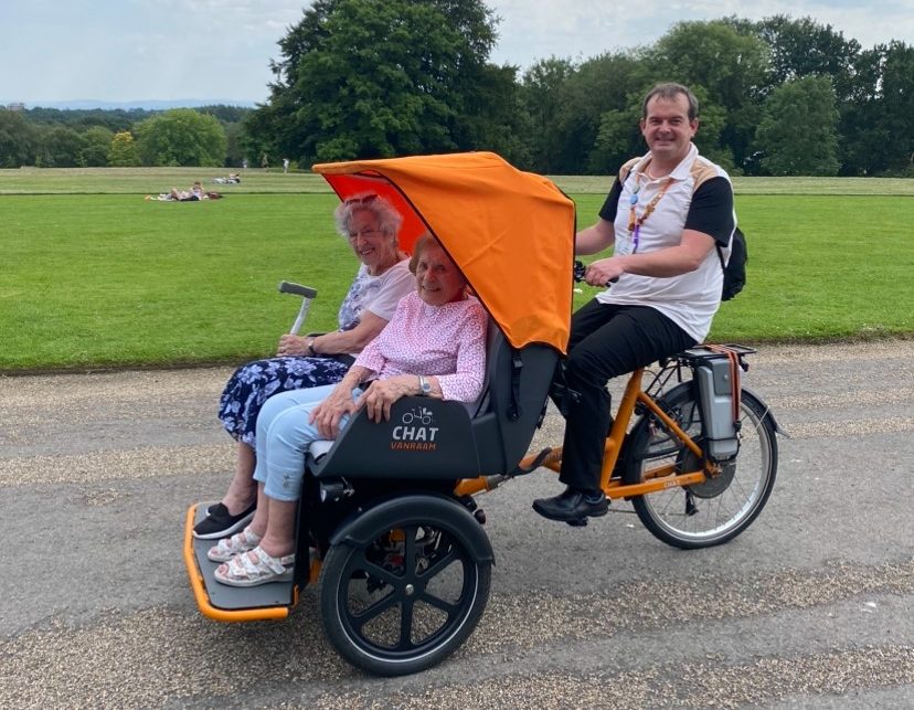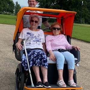 Inspired by reading about the project ‘Cycling Without Age’ – a movement started by Ole Kassow to help older people with limited mobility to get back on their bicycles by using a rickshaw -– we felt this could be a perfect addition to the activities that we offer onsite which include cycling on our Motiview stationary bikes and which so many of our Heathlands Village residents love.