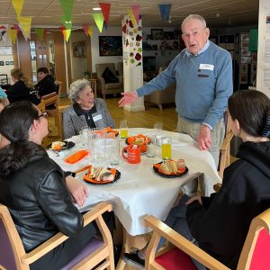 After the speakers, the children made tea and decorated cakes ready for the community clients and Heathlands Villagers, who soon arrived and sat down for afternoon tea with the children. Using conversation starters, they struck up an immediate rapport and chatted for over an hour.