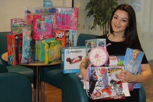 Pictured is Fundraising Officer, Zoe Herman, with a sample of some of the donated toys.
