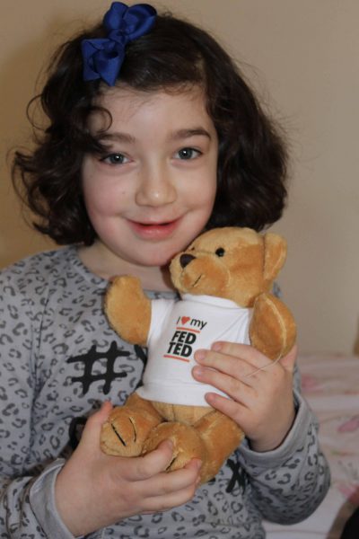 “Having a child with disabilities profoundly affects a family. Regular breaks from caring are desperately important. Eva has respite support from The Fed’s Project Smile and visits their children’s centre twice a week. She loves it and it helps us so, so much. The money from selling the Fed Teds will help families like ours, and other people in need. By the way Eva has slept with her Fed Ted every night since she got him!”