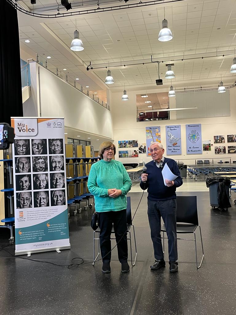 94 year old Holocaust Survivor and Fed My Voice Storyteller Ike Alterman told his life story to 300 Year 9 and 10 students at Falinge Park High School in Rochdale.