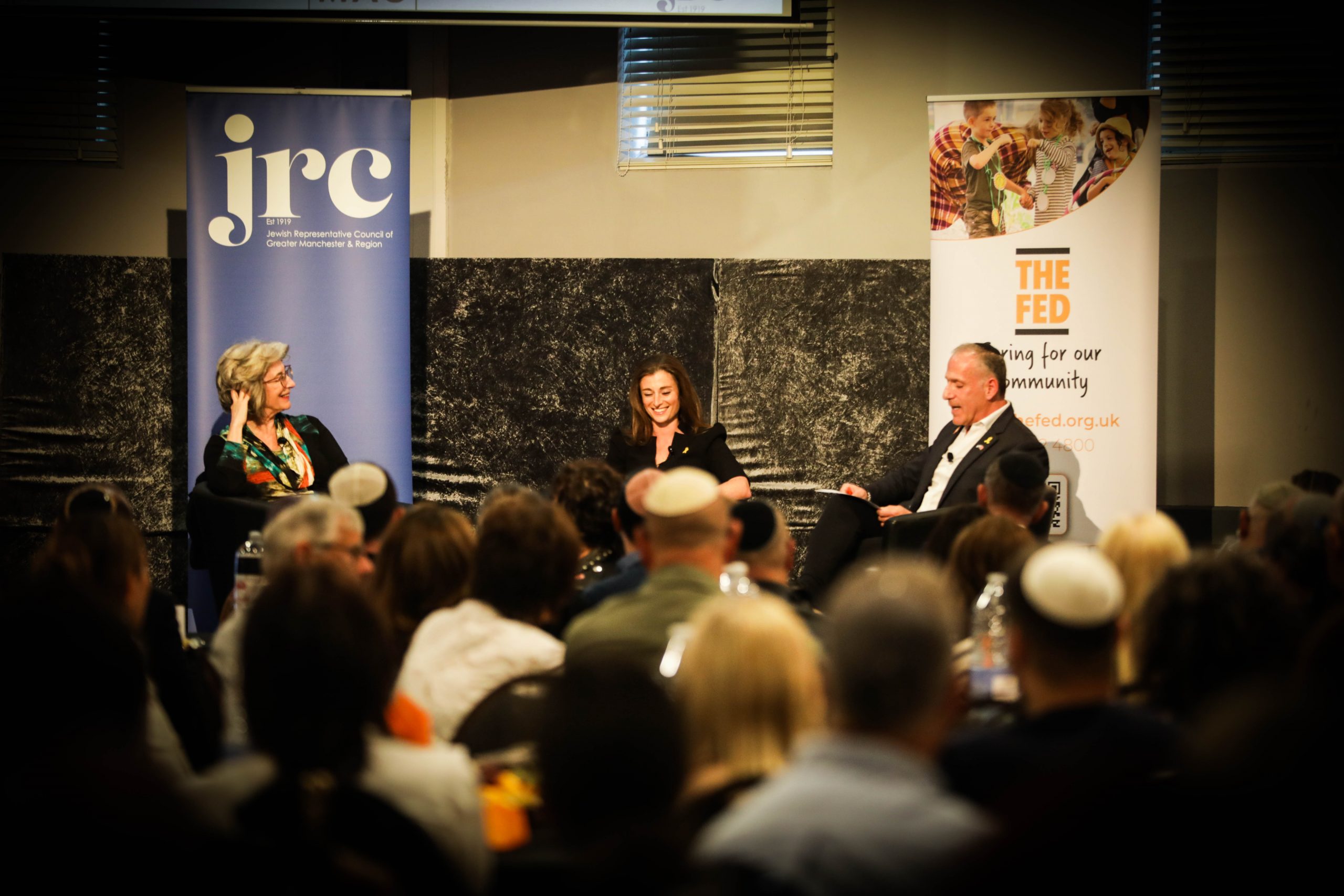 The joint Fed and Jewish Representative Council of Greater Manchester & Region (JRC) event saw Dame Maureen and Natasha in conversation with Raphi Bloom, The Fed’s Director of Fundraising and Marketing. They covered topics including whether the Jewish community has a future in the UK, how the celebrity world has reacted to the Israel-Hamas conflict, the way the IDF has responded within the laws of war to the Oct 7 attack, why so many progressives were – and still are – silent on the rape of Jewish women, what the next steps are for the ICC and ICJ and how, as a community, we reclaim the true meaning of Zionism from those who distort it.