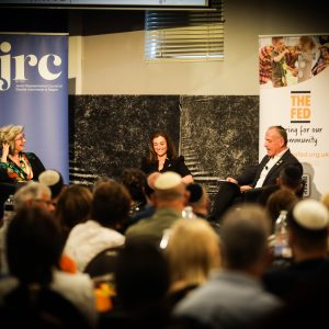 Guests were welcomed by Mark Adlestone OBE, the chair of the JRC and Honorary Patron of The Fed. Mark reflected on the crucial work the JRC has undertaken since Oct 7, leading the way on issues that have taken place in Greater Manchester but that have required engaging in dialogue with politicians at the highest levels of government. That work has also seen the JRC’s comments be carried on the front pages of national print media along with regular contributions on local, national and international news channels to ensure the community’s voice is heard loudly and clearly.
