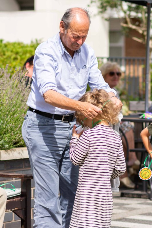 Nine youngsters – all service-uses of the Children’s Centre – took turns with races and games in the sunshine, with residents of Heathlands Village and their relatives acting as referees, race stewards and medal presenters.