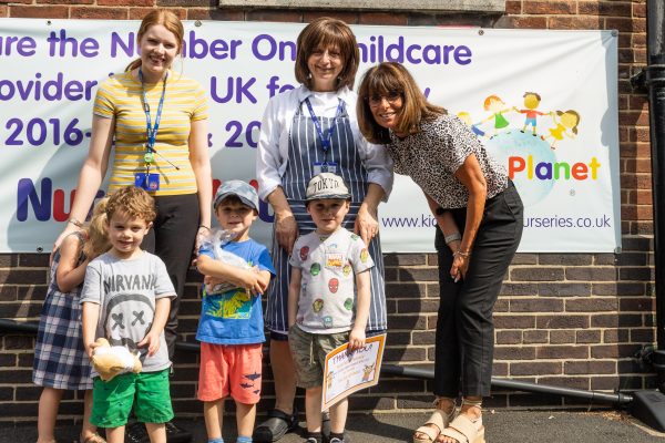 Pictured is Kids Palent’s Miss Chainey, together with youngsters Ava, Rafi, Natty and Reginald, along with Barbara Woolfstein.