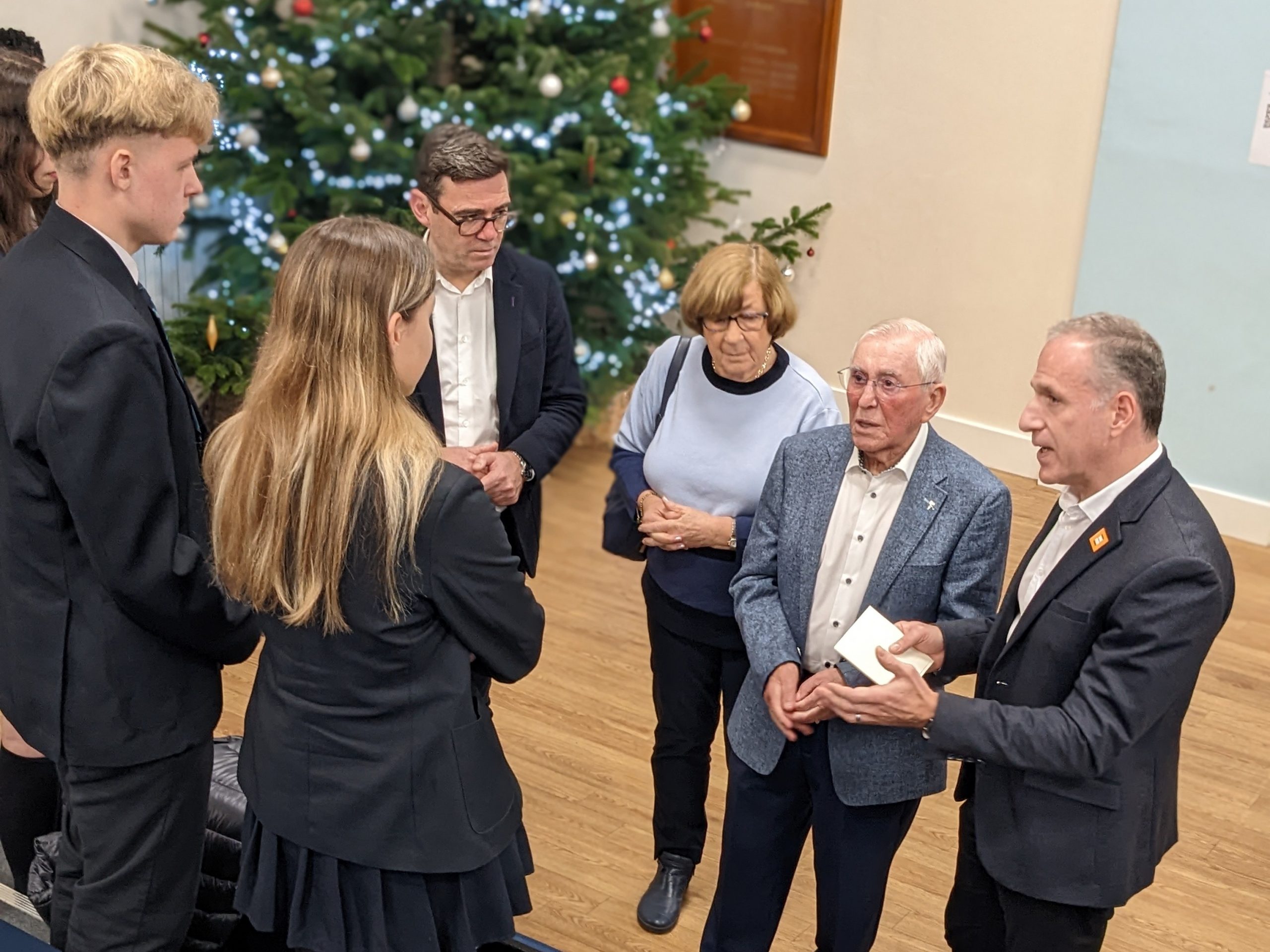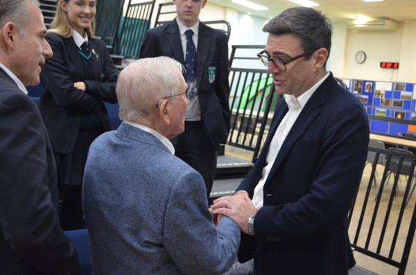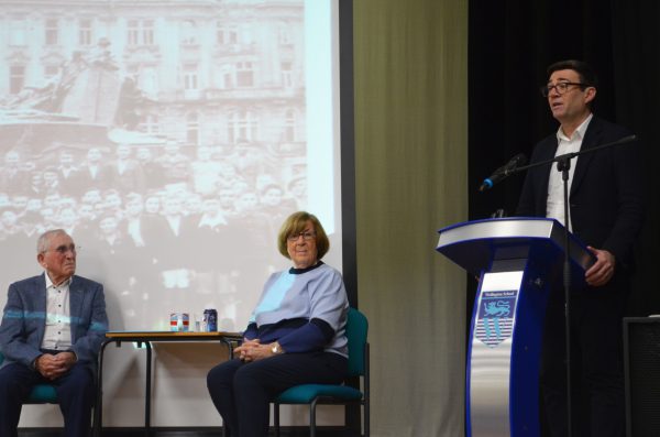 Greater Manchester Mayor, Andy Burnham, also present, entreated the students to remember for the rest of their lives, “the incredible privilege of hearing directly…in person from somebody … who lived through the worst example of human behaviour in history…to hear first-hand what that was like…in Auschwitz Birkenau, to go on the death march through Germany, things that we just can’t imagine,” and to pass on that story, “Because if you don’t, if we don’t, who will?”