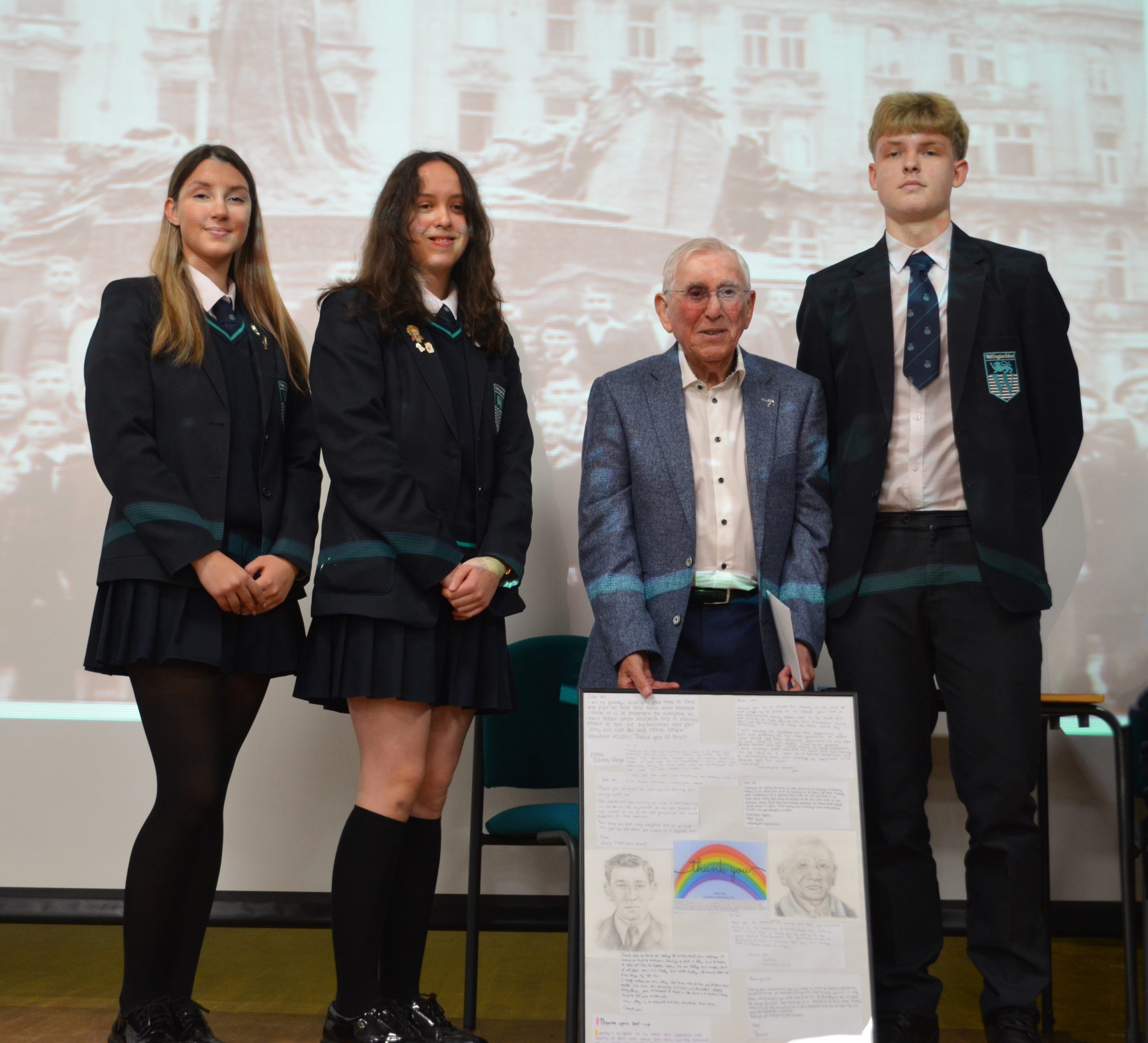 A jam-packed auditorium of 150 year 10, 12 and 13 pupils at Wellington School in Timperley listened in awe to My Voice storyteller, Holocaust Survivor 94-year-old Ike Alterman, as he recounted, his own and his family’s personal experiences of Nazi atrocities, and the rebuilding of his life in Manchester – his voice unwavering.