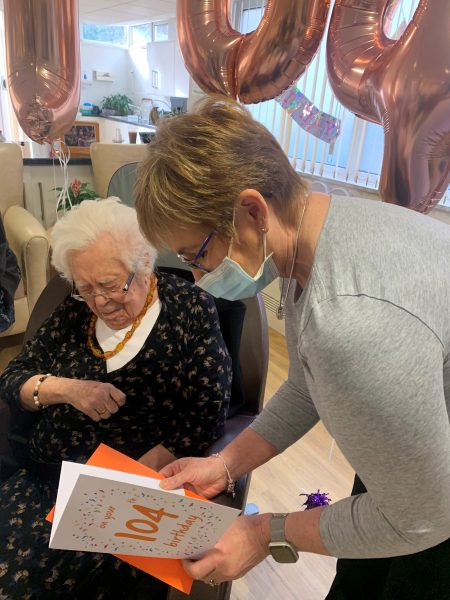 Sadly this year, only-daughter Karen was not able share the birthday celebrations planned by staff of the home to mark her mother’s momentous day, but her husband, Robin, was due to visit in her place and show Margaret video footage of her pals from Worsley library’s Friday coffee mornings, toasting her health and sending good wishes.