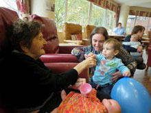 Mitzvah Mummies (and Daddies) is just one of the many project ideas put forward by the Mitzvah Day team, encouraging parents to “bring your baby along to a care home to bring joy to the residents”. This certainly captured the imagination of Dr Debra Harris who coordinated a visit by mums and babies to Eventhall House at Heathlands Village.