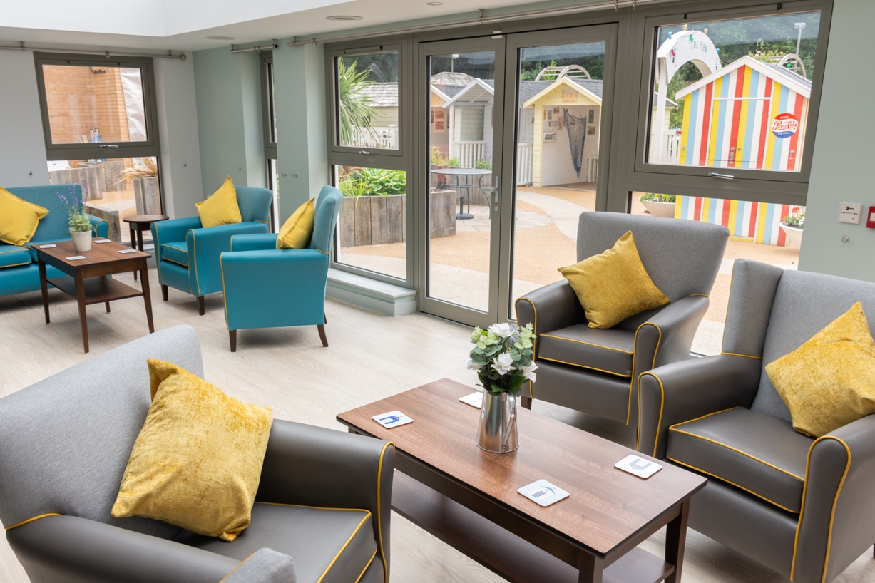 Seaside sensory garden indoors, creating a bright and uplifting environment.æ People with dementia can often live very much in the past. The beach theme aims to stimulate positive memories of trips to the seaside and family holidays, either growing up or in young adult life.”