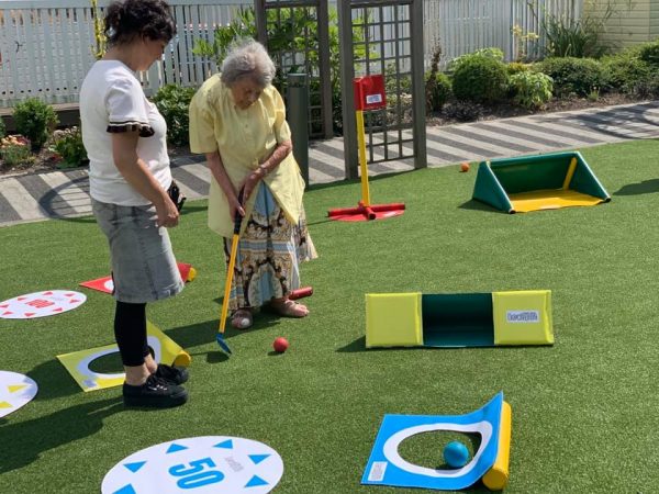 Residents, relatives and staff competed against one another in a series of mini-golf and lawn bowls matches recently, before relaxing with ice cream and ice lollies from the community café.