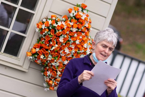 An orange wreath was hung by one of our youngest residents, Shelley Niven, who also performed a poem of her own creation, titled ‘Let Us Reflect On This Solemn Day.’