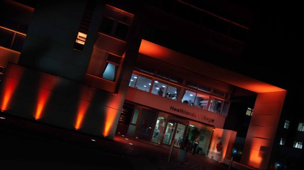 As the day drew to a close, Heathlands Village was bathed in a beautiful orange glow by display lights placed all around the building.