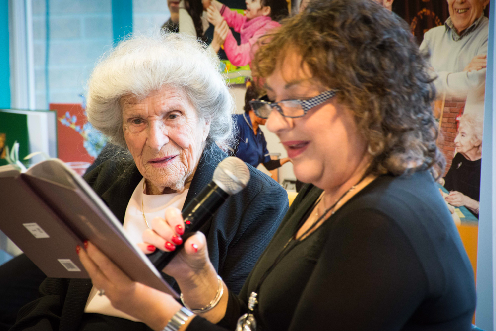 Ninety-four year old Kindertransport refugee, Margit Cohen – a resident of Heathlands Village – and her befriending volunteer, Steph Roth, spoke about the process of recording Margit’s memories. Steph read extracts from Margit’s book, with Margit interjecting with amusing anecdotes.